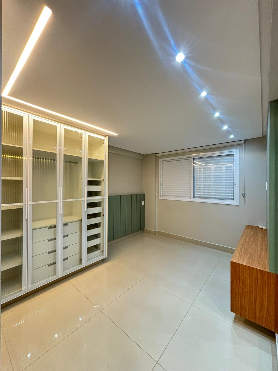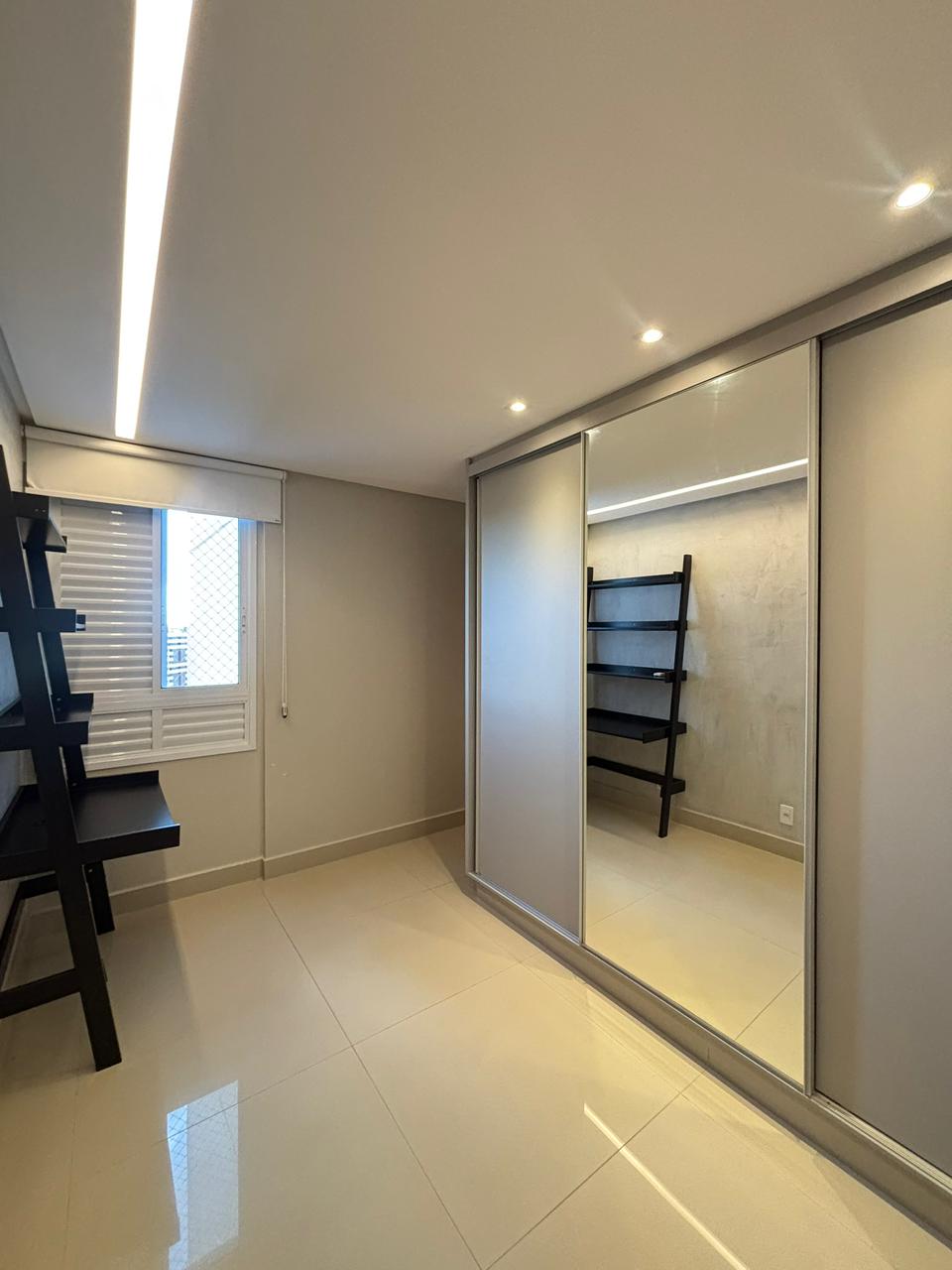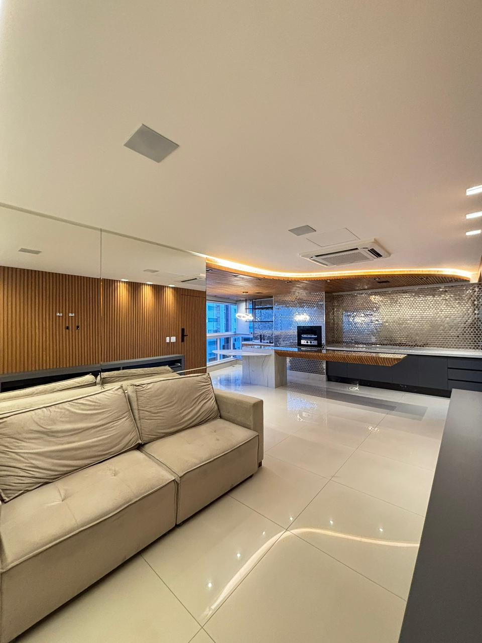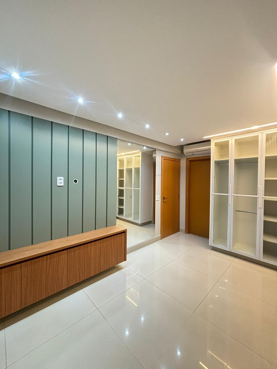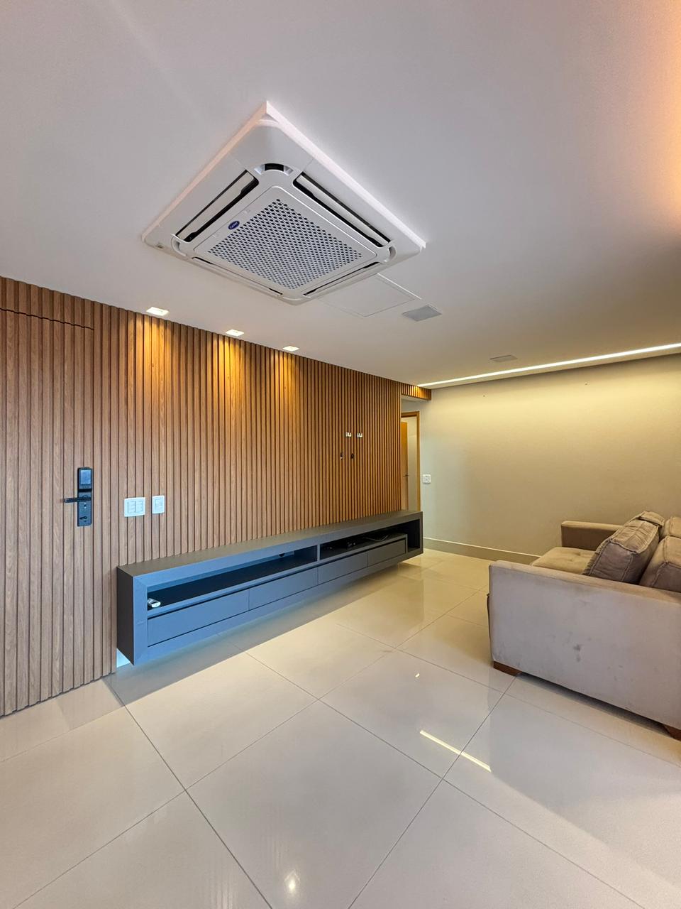 O apartamento conta com 3 suítes plenas, 2 vagas de garagem paralelas e elevador privativo, entregando exclusividade no acesso. Os ambientes já estão completos com armários planejados e ar-condicionado em todos os cômodos, além de sala de estar com painel, sala de jantar integrada e cozinha semi mobiliada.