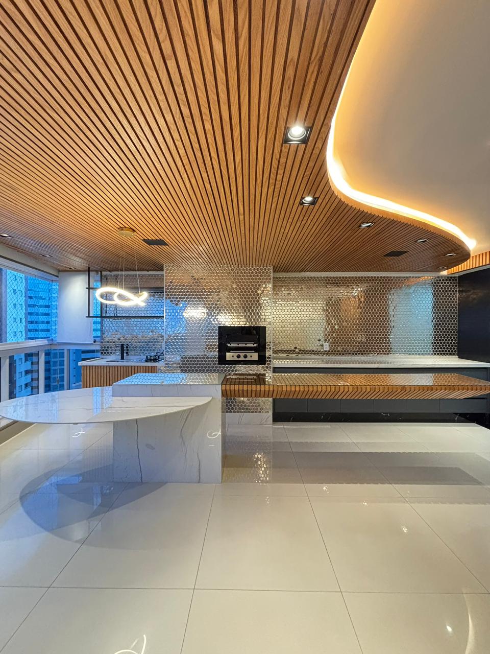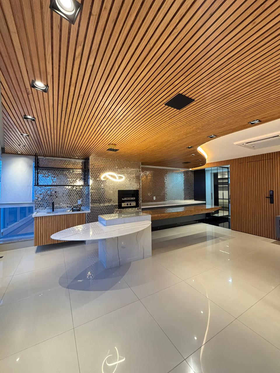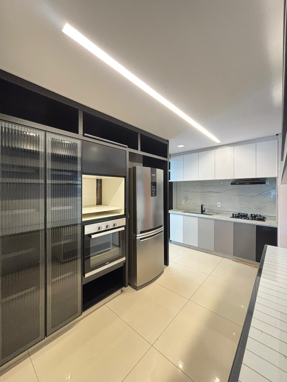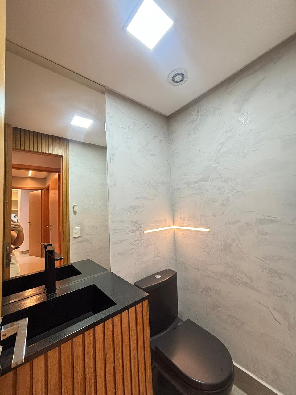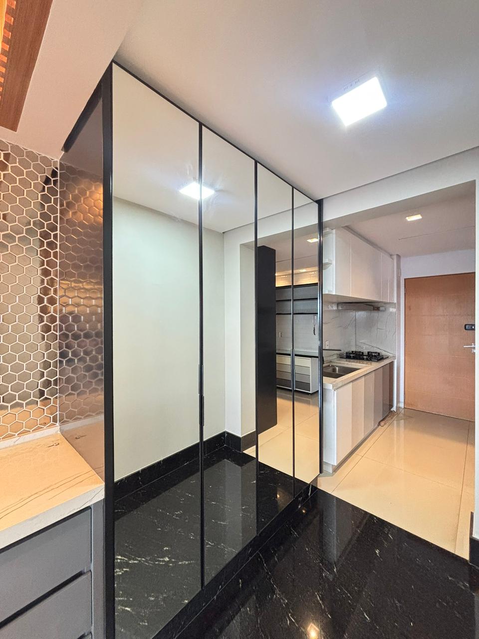 O apartamento conta com 3 suítes plenas, 2 vagas de garagem paralelas e elevador privativo, entregando exclusividade no acesso. Os ambientes já estão completos com armários planejados e ar-condicionado em todos os cômodos, além de sala de estar com painel, sala de jantar integrada e cozinha semi mobiliada.