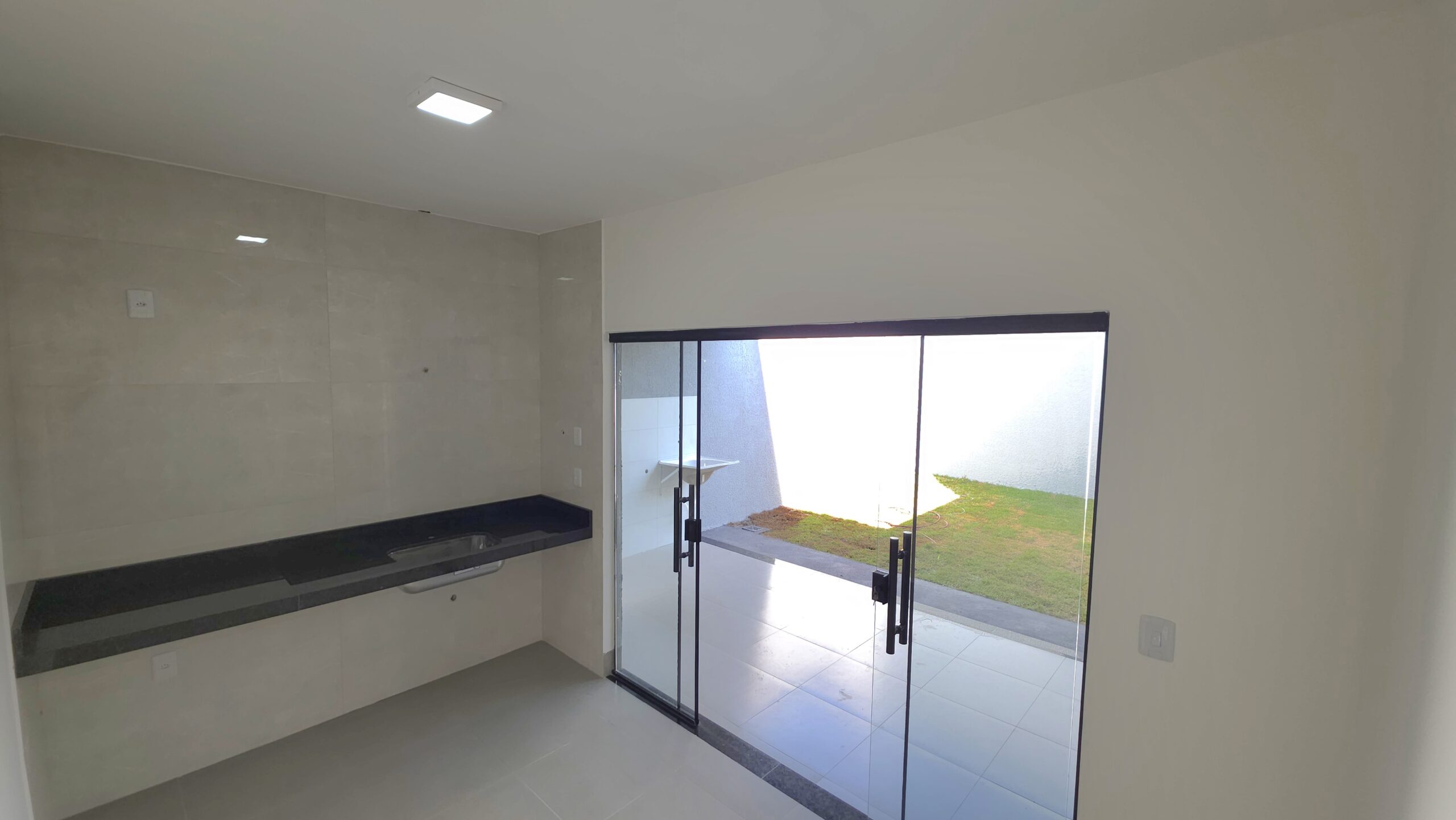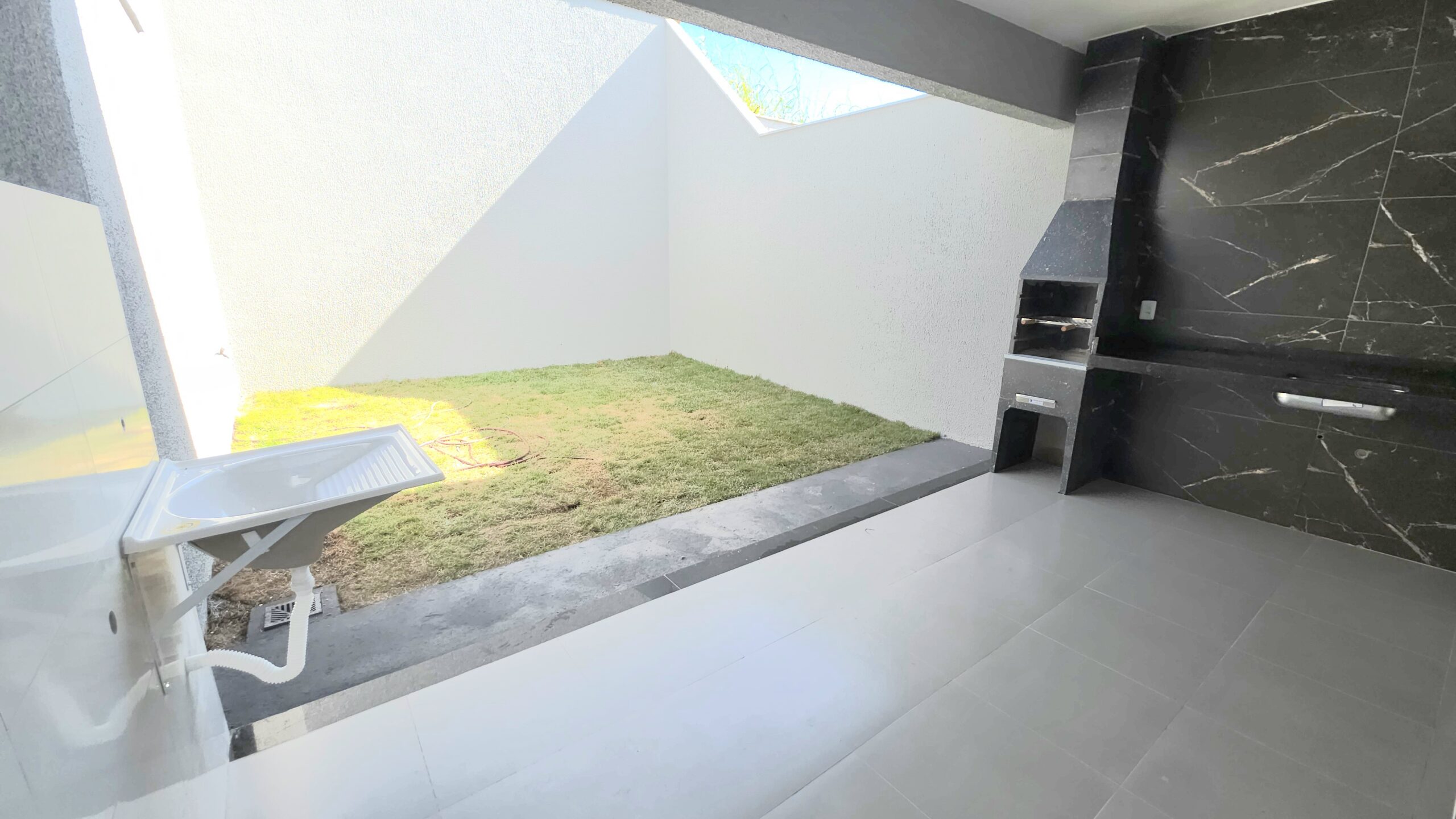 A área interna dispõe de sala de estar integrada à cozinha americana, criando um ambiente moderno e acolhedor. Na área externa, destaca-se a varanda gourmet com churrasqueira a carvão, ideal para momentos de lazer, além de área de serviço coberta.